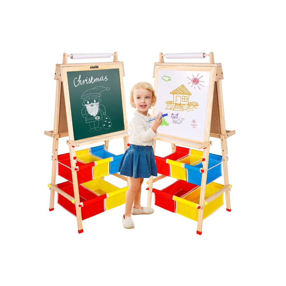 Q-FQRM Wooden Art Easel Kids Double Sided Chalkboard & Whiteboard (Free Shipping)