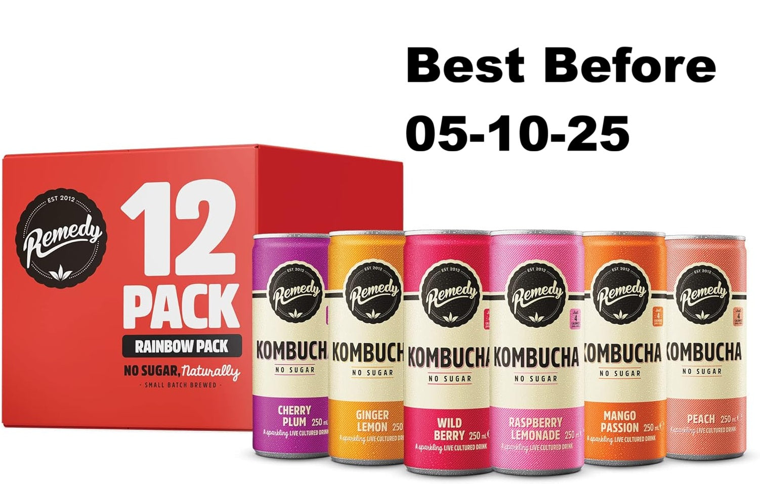 24 x 250ml Remedy Kombucha Tea - Rainbow Mixed Pack - Sparkling LiveBBE 05-10-25 RRP £50 Sale Price...£14.99 GBP£14.99 GBP£50.00 GBP -
