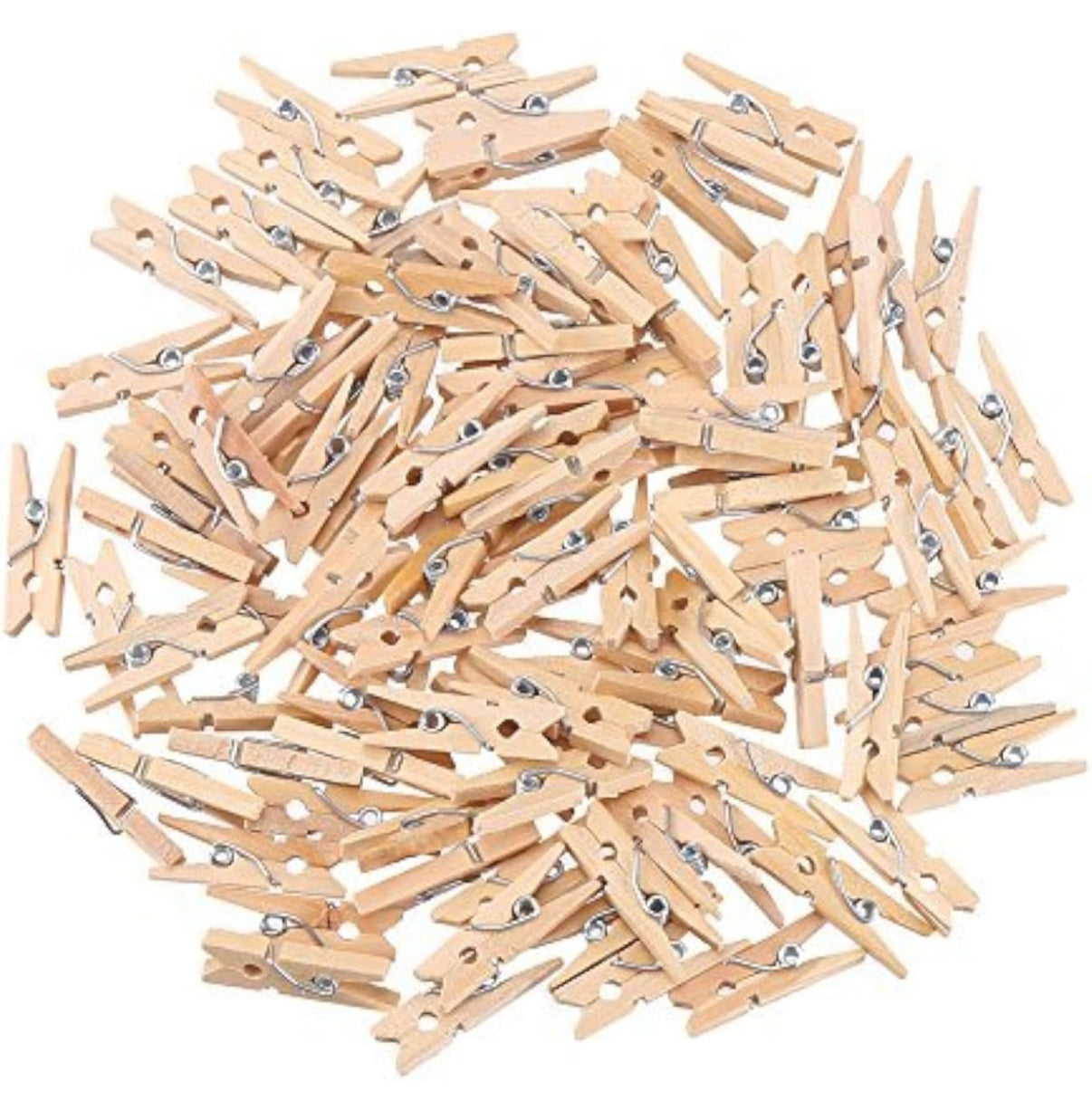 100 Pieces Mini Wooden Pegs Clips Photo Pins Coloured Craft, Natural