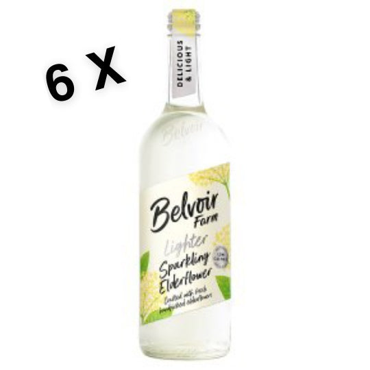 6 x 750ml Belvoir Farm Lighter Sparkling Elderflower - Hand Picked Elderflowers | 30% Less Sugar only 50 Calories | 100% Natural Ingredients | Suitable for Vegetarians & Vegans BBE 11-26 RRP £19.99 Sale price £7.99